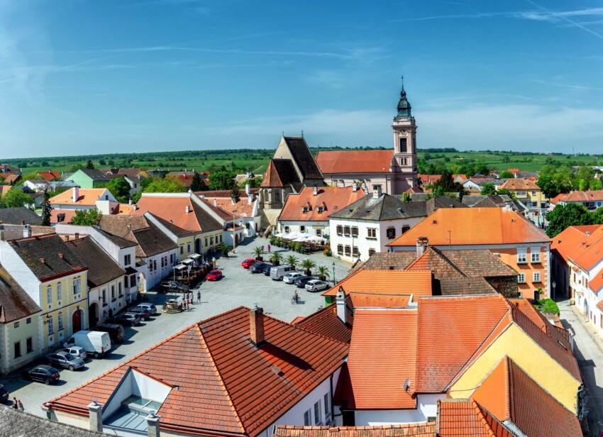 The historic centre of Rust is characterised by typical colourful houses with arched arcades and inner courtyards, many of which house historic wine cellars (Heuriger) where local wines can be tasted accompanied by regional gastronomic specialities. The 14th-century Gothic parish church houses a valuable wooden altar, while over 40 pairs of white storks nest on the roofs and chimneys of the town, a symbol of Rust and a nature attraction that attracts thousands of visitors every year. The Wine Museum documents the region’s thousand-year-old winemaking tradition through ancient tools, historic barrels and guided tastings in underground cellars carved into the tuff.