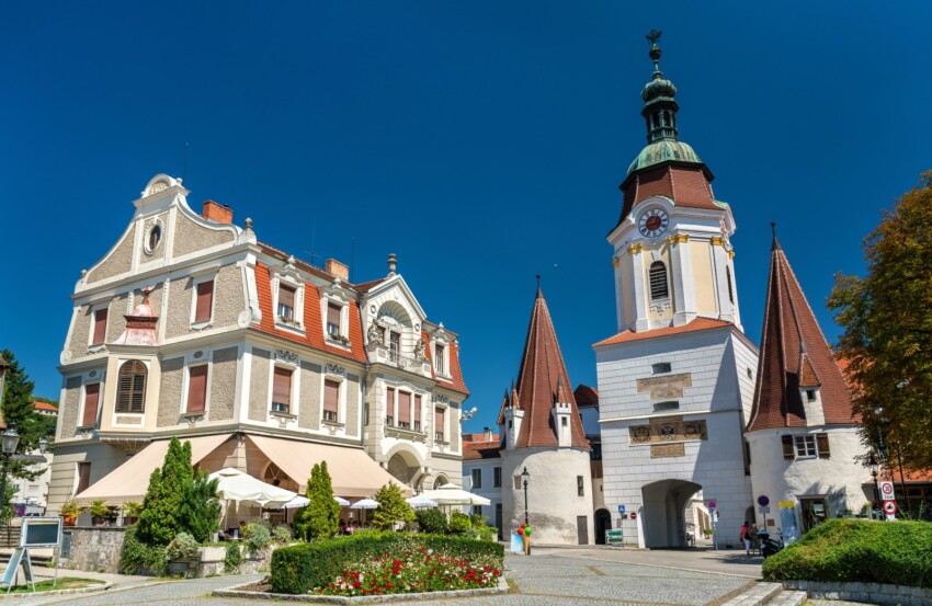 The town of Krems an der Donau, which simply means ‘Krems on the Danube’, has about 25,000 inhabitants, making it the fifth most populous town in Lower Austria. Situated at the confluence of the Danube and the Krems River in the Waldviertel region, Krems was as large as Vienna in the 11th century.