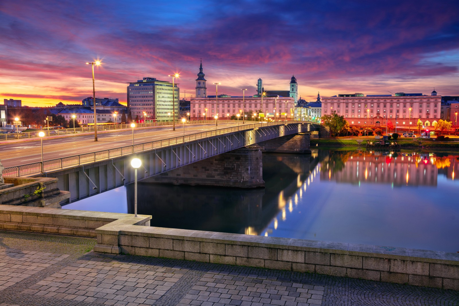 In the evening, when the futuristic buildings are spectacularly illuminated and reflected in the waters of the Danube, images of an industrial Linz disappear from the memory and only the enchantment of a vital and energetic city remains.