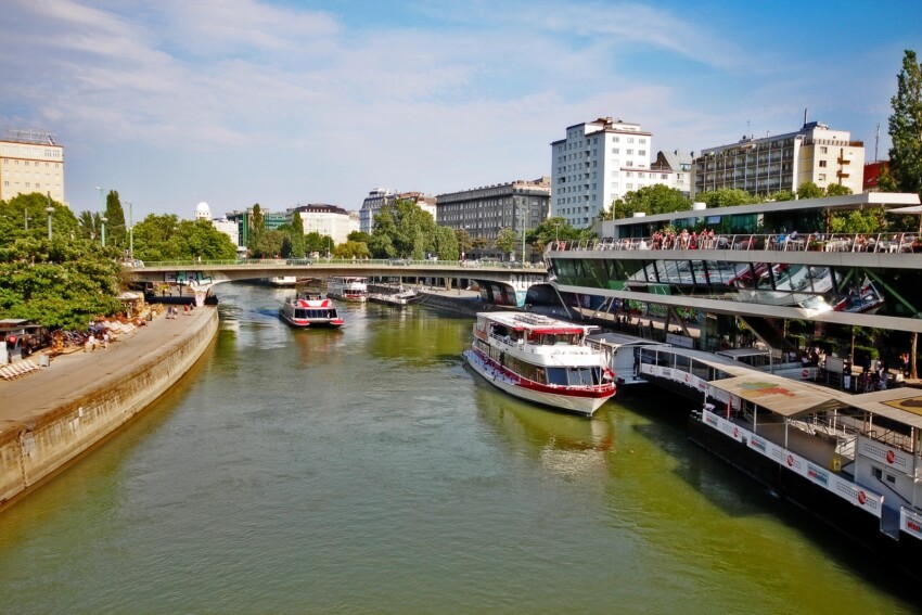 The Danube river system in Vienna is completed by the Donaukanal, an arm of the river that forms a large island on which the districts of Brigittenau and Leopoldstadt are located. The Donaukanal is much closer to the city centre than the Danube itself, and can be reached on foot or by underground, via the U1 line with the Schwedenplatz stop. And it is precisely at Schwedenplatz, between the two bridges Schwedenbrücke and Marienbrücke, that the departure point for the tourist ships is located.