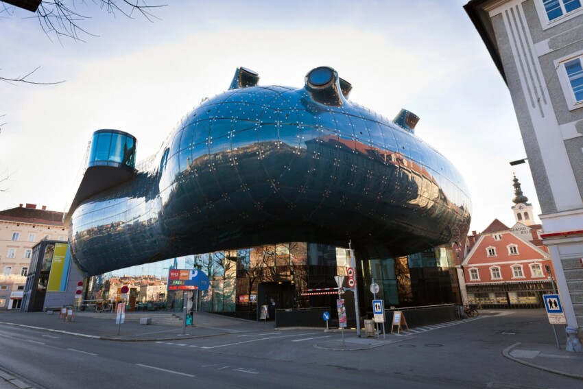 Surnommé par les habitants « le gentil étranger », il est le résultat d’un ambitieux projet d’architecture contemporaine des architectes londoniens Peter Cook et Colin Fournier, qui a vu la construction d’un musée à la forme excentrique, ressemblant vaguement à une énorme limace de mer, au cœur de la vieille ville, à côté de bâtiments historiques d’un style totalement différent. Cette coexistence pacifique étonnamment réussie est l’un des facteurs qui font de Graz une ville unique.