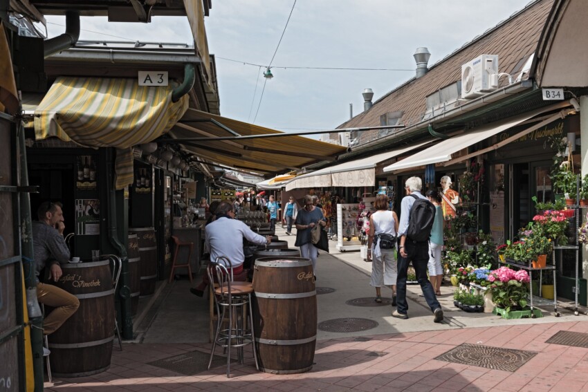 Entre 1916 et aujourd’hui, le marché s’est considérablement agrandi, passant d’une superficie initiale de 13 500 m² à 36 000 m², couvrant ainsi la partie de la rivière Wien. L’architecte Friedrich Jäckel a conçu 57 salles de vente en bois avec des renforts en fer dans le style Biedermeier, qui sont aujourd’hui classées monuments historiques. Ce qui à l’origine pouvait accueillir 50 000 personnes et 600 marchands est devenu un lieu emblématique qui reflète parfaitement la diversité culturelle de Vienne.